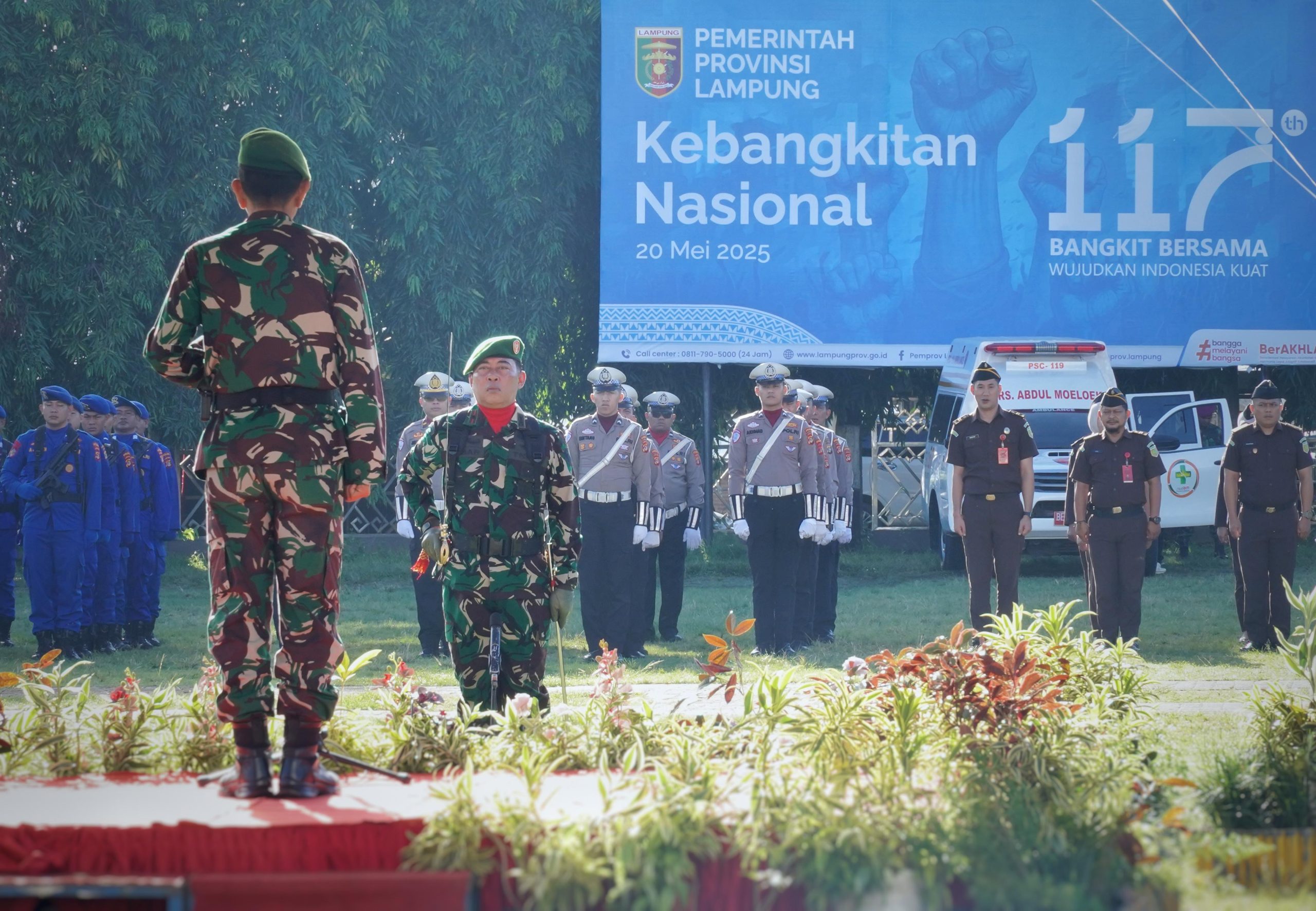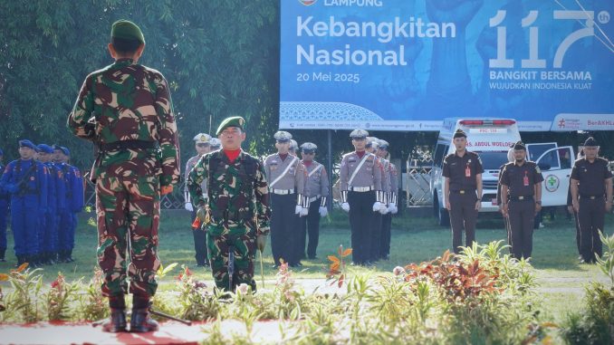 BANDARLAMPUNG – Pemerintah Provinsi Lampung menggelar Upacara Peringatan Hari Kebangkitan Nasional (Harkitnas) ke-117 Tahun 2025 di Lapangan Korpri, Komplek Perkantoran Gubernur Lampung, Selasa (20/5/2025).