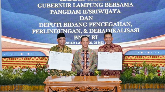 Hal tersebut disampaikan Gubernur yang didampingi Ketua TP PKK Provinsi Lampung Purnama Wulan Sari Mirza saat menggelar silaturahmi dan ramah tamah bersama Pangdam II/Sriwijaya Mayjen TNI Ujang Darwis dan Deputi Bidang Pencegahan, Perlindungan, dan Deradikalisasi BNPT, Mayjen TNI Sudaryanto, di Mahan Agung, Rabu (21/5/2025) malam.
