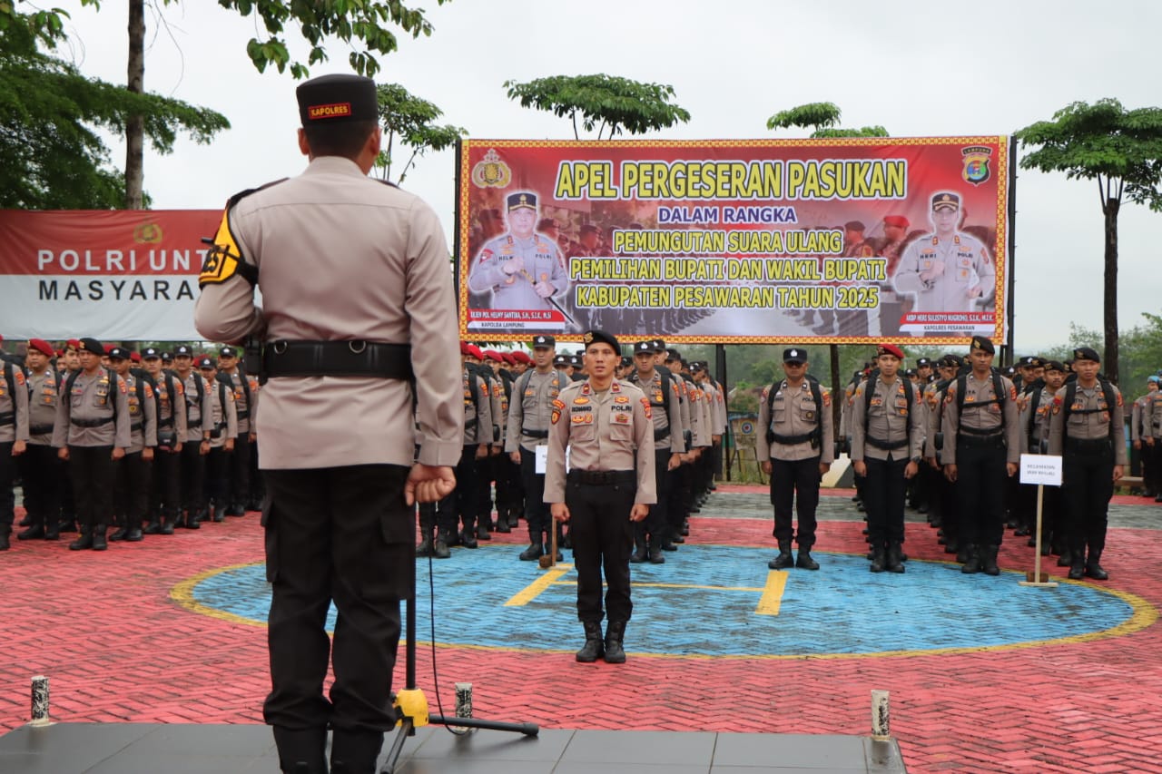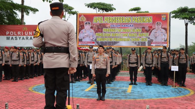Apel dipimpin langsung oleh Kapolres Pesawaran AKBP Heri Sulistyo Nugroho, S.I.K., M.I.K., yang dalam amanatnya menekankan pentingnya netralitas, kesiapan personel, dan sinergisitas antar lembaga demi suksesnya pemungutan suara ulang.