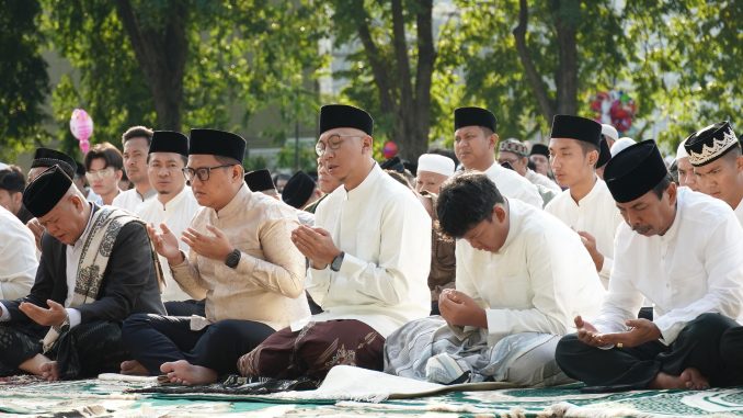 Bandar Lampung — Gubernur Rahmat Mirzani Djausal bersama keluarga melaksanakan Salat Idul Adha 1446 H / Tahun 2025, di Lapangan Saburai, Enggal Bandar Lampung, Jumat (6/6/2025).
