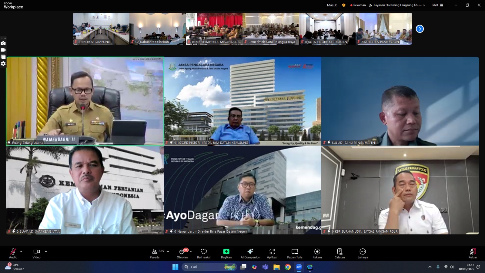 Bandar Lampung — Pemerintah Provinsi Lampung yang diwakili oleh Staf Ahli Bidang Ekonomi, Keuangan dan Pembangunan (Ekubang), Zainal Abidin mengikuti Rapat Koordinasi Pengendalian Inflasi Daerah (secara virtual) bertempat di Ruang Command Center Lt. II Dinas Kominfotik Provinsi Lampung, Selasa (10/06/2025).