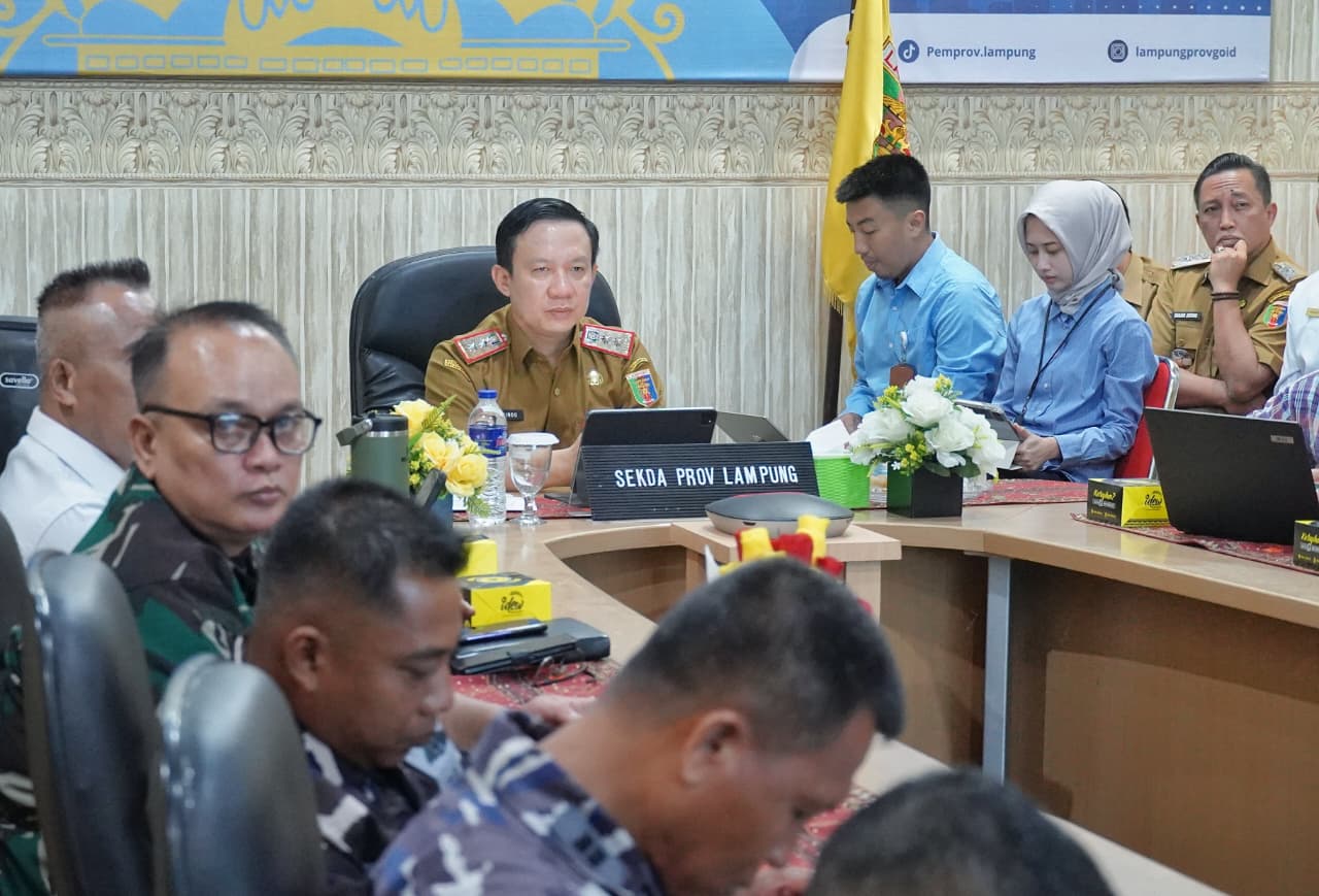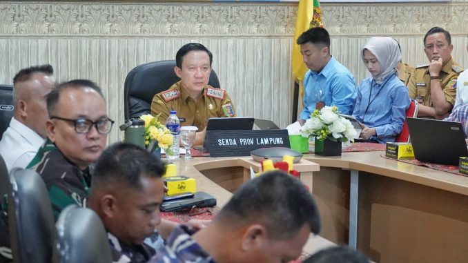 Bandar Lampung —- Sekdaprov Lampung, Marindo Kurniawan, mengikuti Rapat Koordinasi Pengendalian Inflasi Daerah secara daring, di Ruang Command Center Dinas Kominfotik Provinsi Lampung, Selasa (16/9/2025).