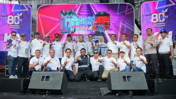 Bandar Lampung — Wakil Gubernur Lampung, Jihan Nurlela, menghadiri acara Lokomotive Lampung Fest 2025 dalam rangkaian peringatan Hari Ulang Tahun (HUT) ke-80 PT. Kereta Api Indonesia (Persero), di Bambu Kuning Square Stasiun Tanjung Karang, Minggu (21/09/2025).