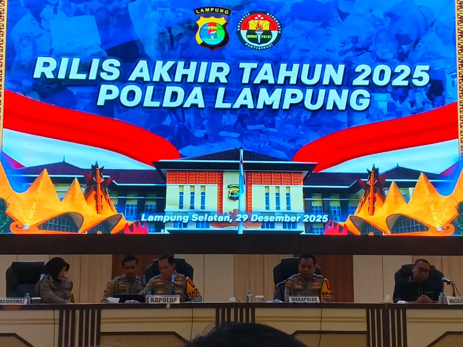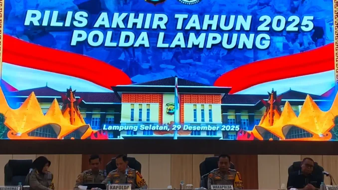 LAMPUNG SELATAN – Kepolisian Daerah (Polda) Lampung gelar Rilis Akhir Tahun 2025 di Gedung Serba Guna (GSG) Presisi Polda Lampung, Senin (29/12/2025).