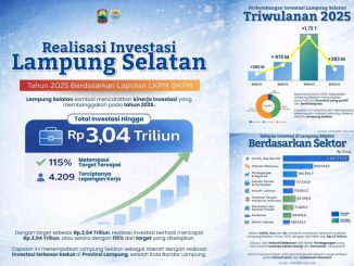 Kalianda – Realisasi investasi Kabupaten Lampung Selatan tahun 2025 melampaui target yang ditetapkan. Hingga akhir Triwulan IV 2025, nilai investasi tercatat mencapai Rp3,040 triliun atau […]